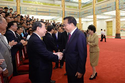李克強(qiáng)總理會(huì)見(jiàn)謝國(guó)民董事長(zhǎng)等首屆世界華僑華人工商大會(huì)代表