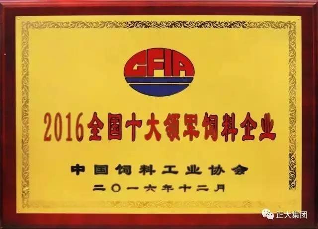 ▲正大集團被中國飼料工業(yè)協(xié)會授予“2016全國十大領軍飼料企業(yè)”稱號