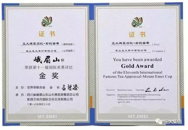 ▲正大牌蒙頂紅?巖韻蜜香榮獲第十一屆國際名茶評比金獎