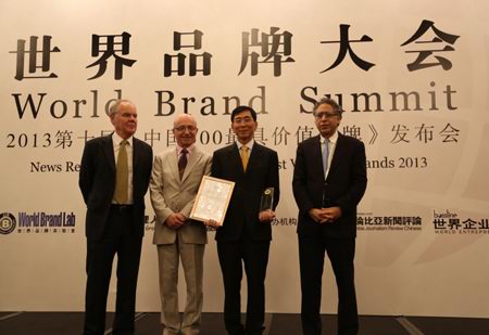 6月26日,由世界品牌實(shí)驗(yàn)室、世界經(jīng)理人雜志等機(jī)構(gòu)主辦的世界品牌大會暨2013年第十屆《中國500***具價值品牌》發(fā)布會在北京東方君悅大酒店召開。會議發(fā)布了2013第十屆《中國500***具價值品牌》排行榜,正大集團(tuán)以208.86億元的品牌價值位居第88位。美國耶魯大學(xué)管理學(xué)院萊維·多爾教授(右一)、法國歐洲工商管理學(xué)院瓊·克勞德·拉里齊教授(左二)以及英國牛津大學(xué)商學(xué)院斯蒂芬·沃格教授(左一)為正大集團(tuán)頒獎。董事長辦公室(北京)楊海浩總裁(右二)代表集團(tuán)接受獎杯及證書。